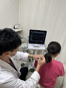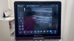当院が使用する超音波エコーは、筋膜が重なり合っている箇所を的確に見ることができ、適切な箇所に注射することで、わずか1分ほどで治療を行うことができます。
